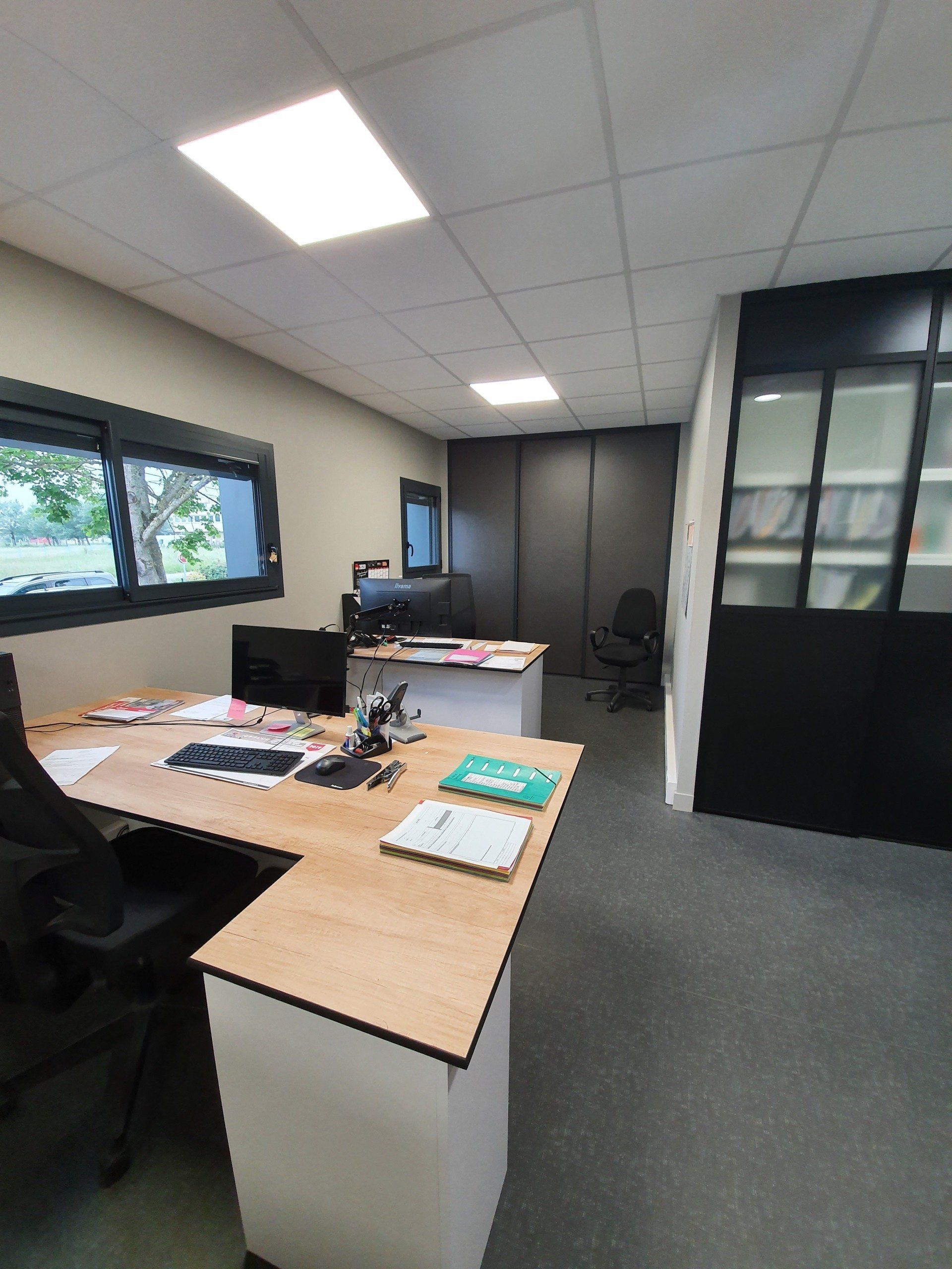Mise en place d'une structure et d'une cloison acier isolée d'une hauteur de 4.5 mètres sur 82 mètres linéaires avec pose de fenêtres en châssis fixe et de 2 portes rapides, ainsi que d'un faux plafond de 400m².