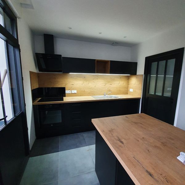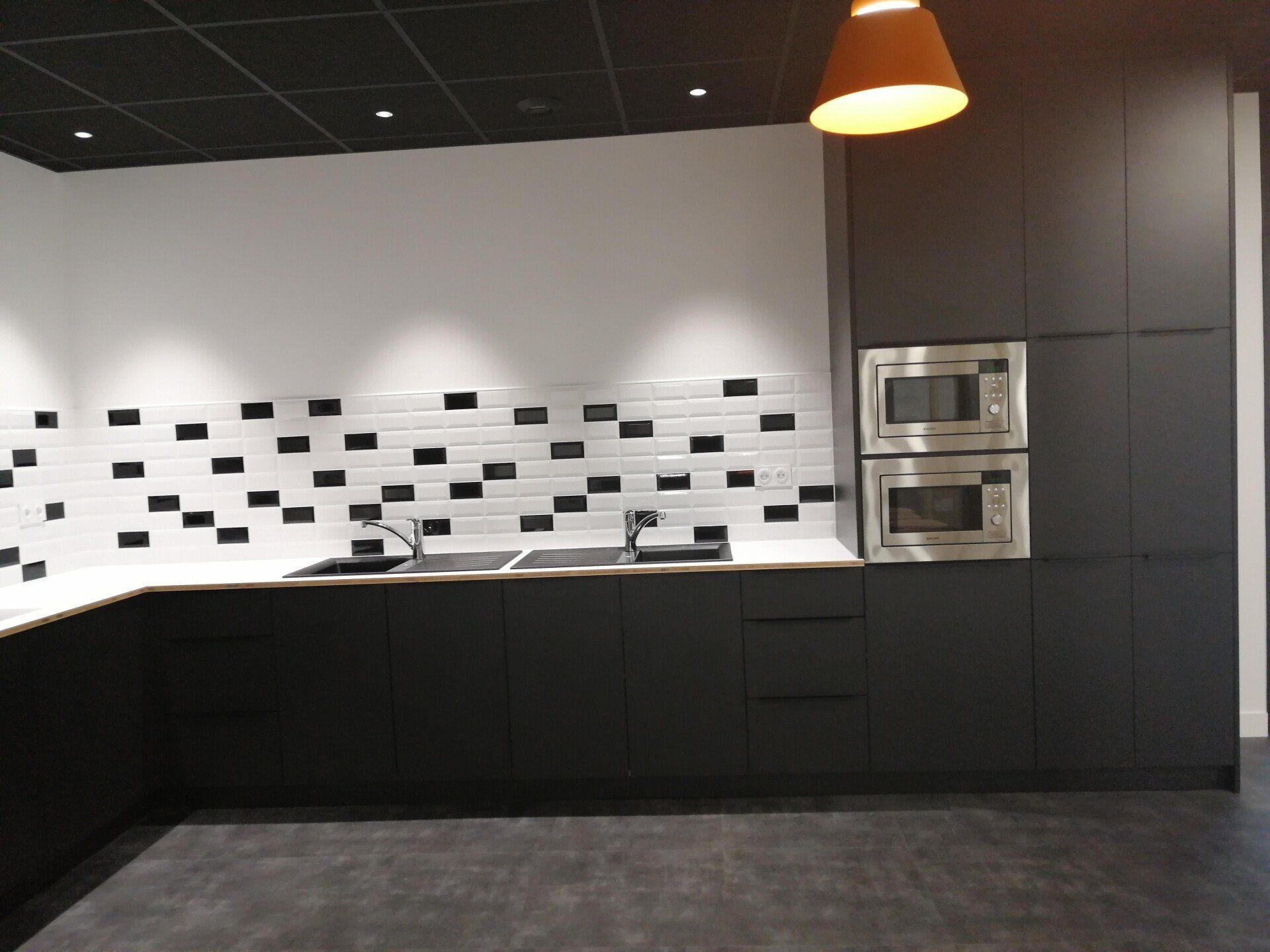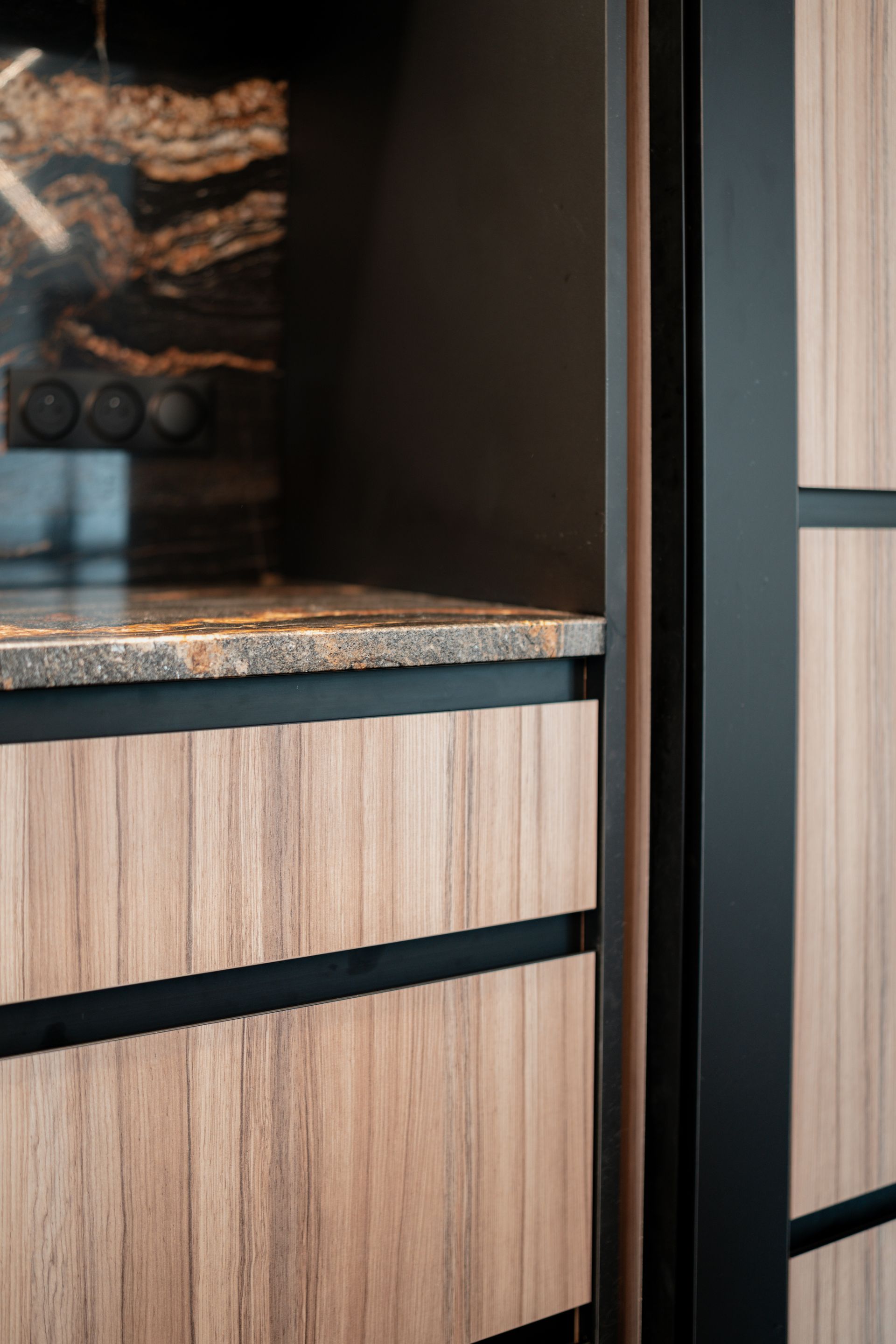 3 - façade "Titane brossé" de chez Polyrey, plan de travail Perfect Sens noir de chez Egger.